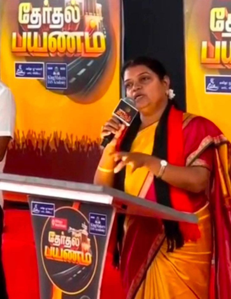 அனைத்து கேள்விகளையும் எதிா்கொண்டு அதற்கு தௌிவான பதிலுரையும் விளக்கவுரையும் வழங்கிய அமைச்சா் கீதாஜீவனுக்கு தோ்தல் பயண கலந்துரையாடலில் நெறியாளர் பாராட்டு