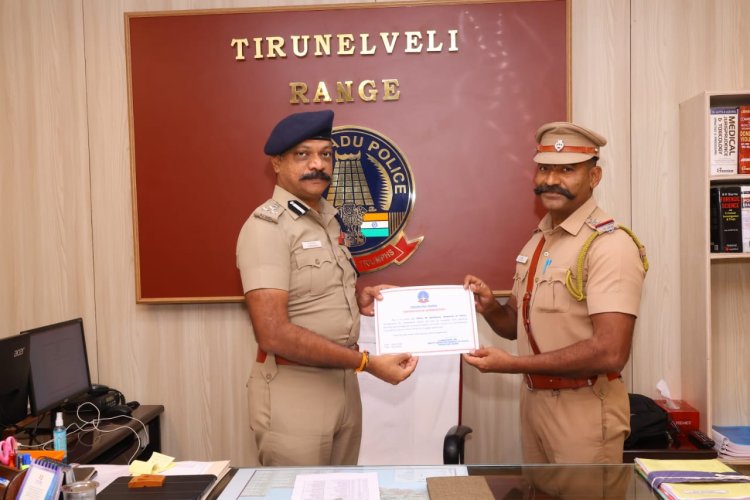 நேற்று (20.03.2026) திருநெல்வேலி சரக காவல் அலுவலகத்தில் நடைபெற்ற நிகழ்ச்சியில், நெல்லை சரக காவல்துறை துணைத் தலைவர் சரவணன் சிறப்பாகப் பணியாற்றிய அதிகாரிகளுக்கு நற்பணிச் சான்றிதழ்களை வழங்கிப் பாராட்டினார்.